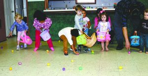 MAKING DO — It wasn’t planned, but a fellowship area and kitchen became the hunting ground for plastic Easter eggs at Samburg Assembly of God when rain moved farther north than expected Saturday morning. It didn’t bother the children though as they moved through the rooms picking up all the eggs in a matter of just a few minutes. The church congregation also treated those in attendance to hot dogs, chips and cupcakes.