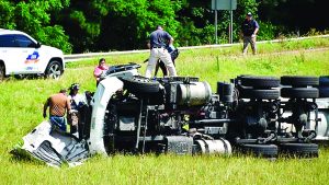 ROLLOVER WRECK — Emergency personnel from both sides of the state line worked amid hot and humid conditions Wednesday morning to extricate a driver after a milk tanker rolled over at the U.S. Highway 51 and U.S. Highway 45 interchange at South Fulton-Fulton on the Tennessee-Kentucky border. The extrication took an extended amount of time, according to personnel at the scene. Among the agencies involved in the effort were the Fulton and South Fulton fire departments, KenTenn EMS, the Fulton and South Fulton police departments and Air Evac, which landed a helicopter at the scene. No additional information was available and there was no word on the extent of injuries.