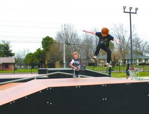 AIR TIME — Ten-year-old Dillon Bates, son of Sabrina Bates and David Bates, both of Martin, got some air off of one of the apparatuses at the Union City skate park Monday afternoon. He has been skating for about two years and said he was really excited to know Union City has a skate park. Watching was Eric King, 9, son of Tina King of Palmersville and Eric King of Dresden. He was in Union City visiting with his grandmother, Roann Clark of Union City. The boys picked what may have been the best day of the week to get outside for skateboarding as skies were clear and the high was 72. Today’s weather has been wet, with rain falling overnight and continuing into the late afternoon. The National Weather Service has predicted the potential for additional rainfall on Wednesday and Thursday, with temperatures only reaching into the low- to high-50s throughout the rest of the week.