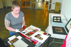 ON DISPLAY — Jade Walsh, assistant exhibits and collections director at Discovery Park of America, reviewed images this morning for the “A Country Divided: Photos from the Civil War” display. It will premiere at DPA’s Military History and Armed Forces Symposium on Friday and will be on display at the museum through May 25. Designed by the collections and exhibits team, it features items from the collection of Jason Pate and consists of several early photography examples depicting soldiers that either lived in or traveled through Obion County and the surrounding Tennessee/Kentucky region during the Civil War. Pate, an award-winning educator currently employed with Obion County Schools, is an avid collector and “caretaker” of Civil War history. Using his nationally published collection, Pate has told, and brought to life, the stories of hundreds of Civil War soldiers from both sides of the war. With a full schedule of events planned, DPA officials have decided to open the local museum at 9 a.m. Friday, Saturday and Sunday for the Military History and Armed Forces Symposium.