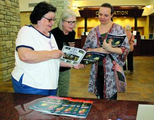 FAIR TIME APPROACHING — Crystal Family and Community Education Club members Alice Fennel (from left) and Phillis Little were joined by Mason Hall FCE member Teresa French at the Obion County Public Library Monday afternoon following an FCE meeting in Union City. They were there to get their copies of the 2022 Obion County Fair Premium Book. The annual fair, with the theme “Over the Harvest Moon,” will be held Aug. 20-27. The Premium Book includes information about all the contests available to Obion County residents and students and their entry dates and times. The book is also available in digital format on the fair’s website at www.obioncounty fair.net. More information about the fair is also available on the fair’s Facebook page at Obion County Fair.