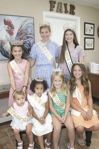 TO RELINQUISH CROWNS — The Obion County Fairest of the Fair queens from 2021 will be relinquishing their crowns Aug. 20 as the Obion County Fair opens an eight-day run of the annual event. Among those who will be crowning new queens are (front, from left) Wee Miss Banks Leigh Baggett of Troy, daughter of Kurt and Ashley Baggett; Tiny Miss Mia O’Neal of Union City, daughter of Lorenzo ONeal and Crystal Edgar; Petite Miss Harper Akin of Union City, daughter of Chris and Candace Akin; Young Miss Kaylee Roney of Union City, daughter of Nicole Walker and Josh Roney; (back) Junior Miss Mia Bird of Union City, daughter of Kalli Whitworth and Derrick Bird; Teen Miss Ivy Kate Morris of South Fulton, daughter of Rob and Jamie Morris; and Obion County Fairest of the Fair Kylie Baggett of Union City, daughter of Melanie Walker and Russ Baggett. Other 2021 queens (not pictured) are Toddler Miss Lily Mayfield of Obion, daughter of Nick and Kassy Mayfield; and Little Miss Carlisle Peery of Union City, daughter of Charles and Kylie Peery. Applications for this year’s pageants are available at https://www.obioncountyfair.net or at the fair office. The $30 entry fee and application must be submitted no later than Aug. 18.