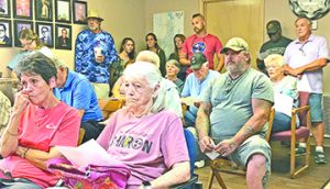 Tensions ran high in Monday night’s meeting in a packed Sharon City Hall, as former Police Chief Mark Kimsey, when Mayor Donna Stricklin asked those in attendance if they had any questions, answered with a simple, “I have some questions. Actually, I have three.”
