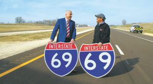 ROAD TO SUCCESS — Obion County Mayor Steve Carr (left) and Matt Ketchum, team lead with the Tennessee Department of Transportation Region 4 in the Newbern construction office, paused on State Route 690 — the future I-69 — at the Highway 51 interchange this morning as they discussed today’s plans for opening the mainline loop around Union City. The section from west of State Route 21 to south of State Route 5 in Obion County has taken multiple projects over a decade and an investment of over $220 million.